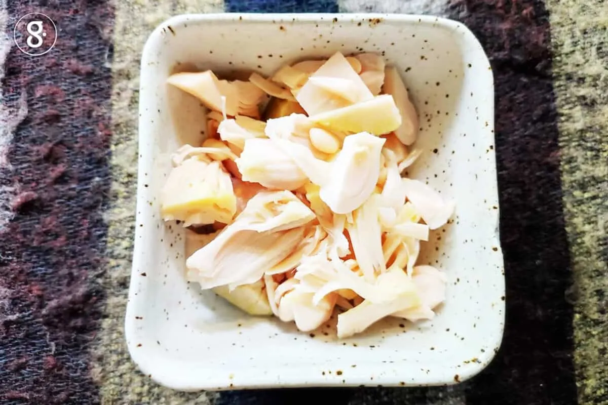 เราสามารถทานขนุนได้ทั้งผลดิบ ผลสุก และเมล็ดที่ต้มแล้ว มีสรรพคุณมากมายทั้งช่วยบำรุงโลหิต ช่วยบำรุงกำลัง ส่วนขนุนอ่อนนั้นเป็นอาหารฤทธิ์เย็นมีรสฝาด ช่วยกระตุ้นน้ำนมในแม่ลูกอ่อนได้ดี สามารถหาซื้อได้ง่ายที่ตลาดแบบที่ต้มแล้ว หรือถ้าบ้านใครมีต้นขนุนจะตัดสด ๆ มาทำอาหารได้เลยก็ดีมาก ๆ แต่ถ้าใครหาไม่ได้ ในปัจจุบันนี้ตามร้านอาหาร plant based ก็สามารถหาขนุนอ่อนบรรจุกระป๋องที่นำเอามาประกอบอาหารได้เลย ช่วยลดความยุ่งยากในการปอก หั่นและต้องจัดการกับยางขนุนอีกด้วย ซึ่งครั้งนี้เราจะใช้ขนุนอ่อนบรรจุกระป๋องมาปรุงอาหารกัน