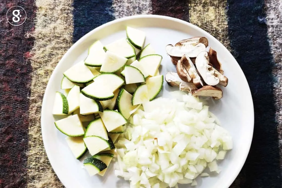 จานนี้เราเลือกเพิ่มโปรตีนด้วยการเติมเห็ดหอม และความหวานด้วยซูกินีและหอมใหญ่ รับประทานแล้วให้ความรู้สึกว่ามีความฟิวชั่นอย่างลงตัว เราลองไปดูส่วนผสมและวิธีทำกันเลยดีกว่าค่ะ