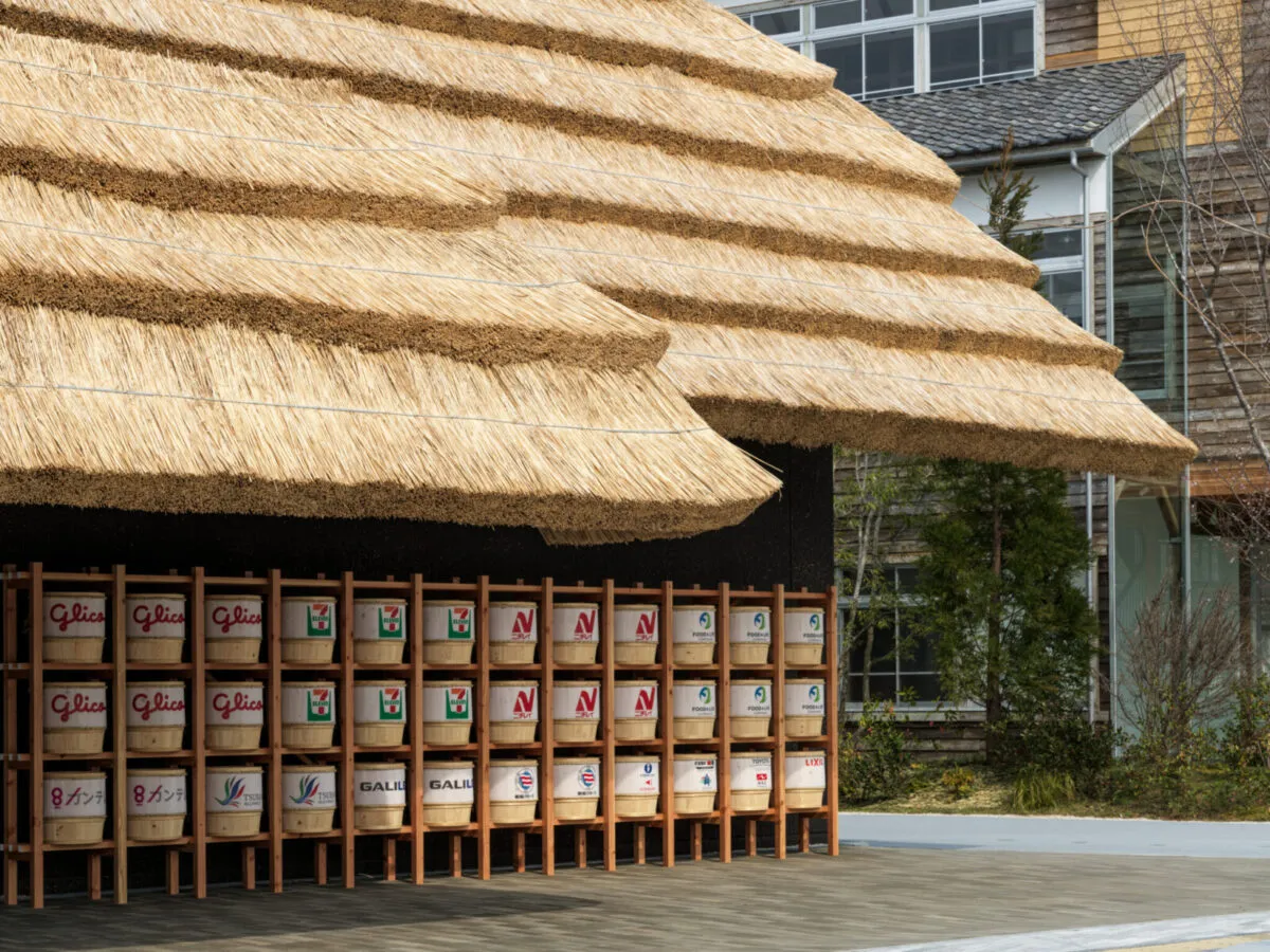 พาวิลเลียนนี้เป็น 1 ใน 8 อาคารนิทรรศการธีมพิเศษของหน่วยงานเอกชนญี่ปุ่นที่ร่วมสร้างสรรค์กับผู้เชี่ยวชาญด้านต่าง ๆ หลากหลายแขนง ถึงแม้ว่าภายนอกจะดูธรรมดาและล้าสมัยทว่าเปลือกนี้กลับห่อหุ้มนวัตกรรมการก่อสร้างอันทันสมัยอยู่ภายในและแฝงปรัชญาวิถียั่งยืนไว้อย่างน่าสนใจทีเดียว ผู้ออกแบบอาคารนี้ก็คือสถาปนิกญี่ปุ่นชื่อดัง Kengo Kuma ที่ต้องการนำเอาภูมิปัญญาญี่ปุ่นโบราณมาประยุกต์กับองค์ความรู้และเทคโนโลยีการก่อสร้างอาคารสมัยใหม่ เริ่มจากผนังอาคารที่ก่อจากดินอัดผสมเศษไม้ขยะอุสาหกรรมเพื่ออัพไซเคิลให้เกิดผลิตภัณฑ์ใหม่เป็นมิตรต่อสิ่งแวดล้อมยิ่งขึ้น ในส่วนของหลังคามุงจากแบบดั้งเดิมมองภายนอกอาจดูโบราณทว่าภายในสอดไส้เทคโนโลยีทันสมัยที่ทำให้หลังคามุงมีประสิทธิภาพเหมือนอย่างหลังคาชนิดอื่นในยุคปัจจุบัน อีกส่วนสำคัญก็คือการปูพื้นกระเบื้องที่เลือกใช้วัสดุพลาสติกรีไซเคิลผลิตจากขยะพลาสติกเพื่อเป็นการรีไซเคิลทรัพยากรกลับมาใช้ใหม่ สถาปัตยกรรมนี้ยังสะท้อนถึงการอยู่ร่วมกันระหว่างสิ่งเก่าและสิ่งใหม่ที่ผสมผสานกันได้อย่างกลมกลืนลงตัวเสมอ ขณะเดียวกันก็สอดคล้องกับวิถียั่งยืนได้ดีอีกด้วย นอกจากนี้ภายในยังจัดนิทรรศการ Sustainable Food และ Food Distribution ที่พูดถึงวิถีบริโภคยั่งยืนยุคใหม่ด้วย