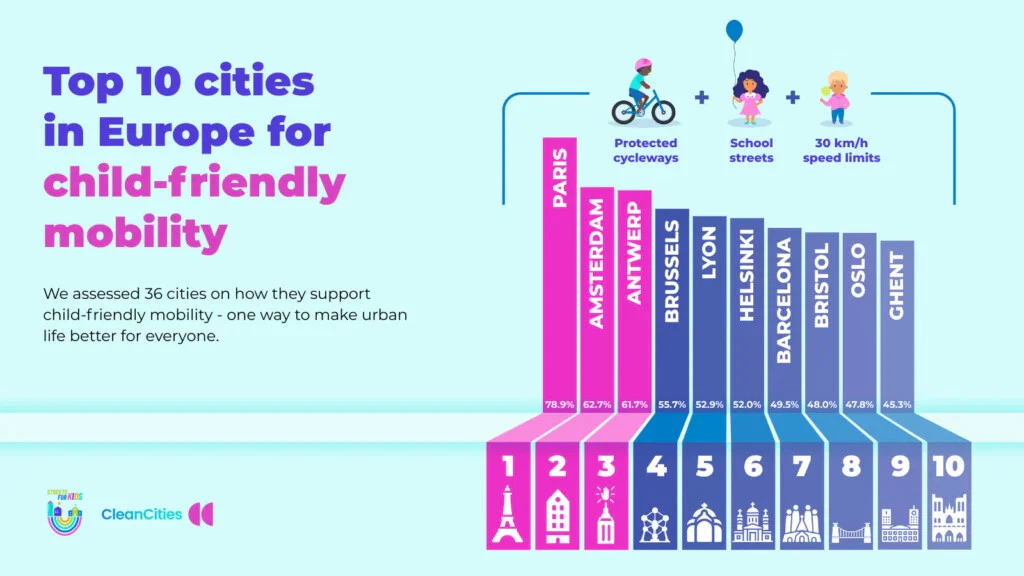 เมื่อช่วงปลายปี 2025 ที่ผ่านมาองค์กร Clean Cities Campaign ได้เผยแพร่ข้อมูล 10 เมืองยุโรปที่มีวิถีจราจรที่เป็นมิตรกับเด็กมากที่สุด (Top Cities in Europe for child-friendly mobility) การจัดอันดับครั้งนี้เมืองปารีสทำคะแนนได้ถึงกว่า 78.9% แซงหน้าอัมสเตอร์ดัมซึ่งครองอันดับ 2 และอีกหลายเมืองชั้นนำ และนั่นทำให้ปารีสได้ฉายาว่าเป็นเมืองจักรยานที่ดีที่สุดในโลกทันที หากย้อนกลับไปแค่ช่วงเวลา 10 กว่าปีที่แล้วปารีสยังคงเป็นเมืองที่มีการจราจรแอดอัด ถนนหนทานเต็มไปด้วยรถยนต์ อากาศเต็มไปด้วยมลพิษ การเคารพกฎจราจรหย่อนยาน ตลอดจนระบบจราจรและการเดินทางด้วยยานพาหนะต่าง ๆ โดยเฉพาะจักรยานนั้นไม่ปลอดภัยสำหรับเด็กเอาเสียเลย ทว่าปัญหาในวันนั้นนำมาสู่การเปลี่ยนแปลงในวันนี้ที่ไม่ได้เกิดขึ้นโดยบังเอิญแต่เป็นการวางแผนปรับปรุงเมืองอย่างจริงจัง