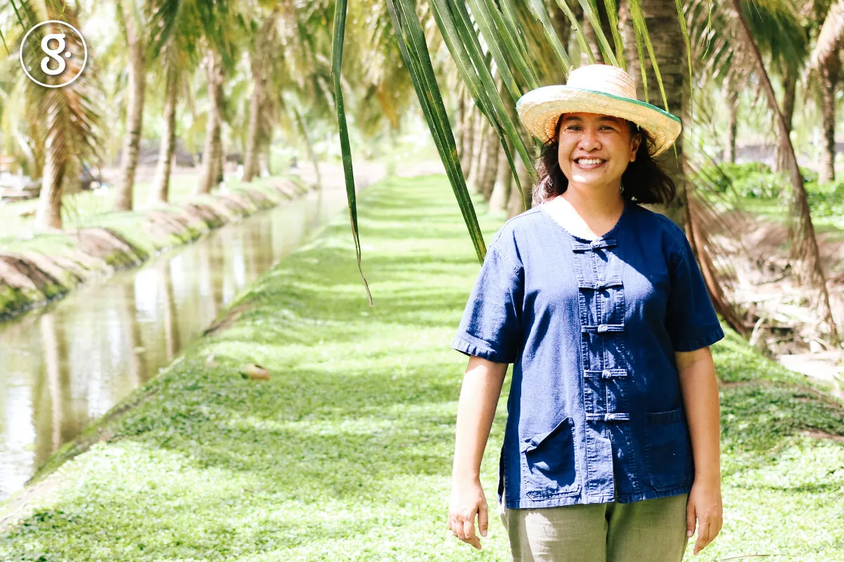 จากการลองผิดลองถูก เราเจอว่าหัวใจสำคัญของเกษตรอินทรีย์อยู่ที่ความสมดุลทางธรรมชาติ เมื่อก่อนพ่อทำสวนมะพร้าวก็ปลูกมะพร้าวอย่างเดียว เรารู้สึกว่าการปลูกพืชชนิดเดียว ถ้าโรคแมลงมานี่มันกินหมดเลยนะ เราควรจะมีพืชตัวอื่นมาช่วย ในท้องร่องเราเลยเลือกปลูกพืชหลากหลาย อย่างชะพลูมีรสขม ทำให้ไม่มีโรคแมลงไปกวน พอปลูกอยู่กับมะพร้าว ชะพลูก็ช่วยลดโรคแมลงในมะพร้าวไปด้วย การปลูกตะไคร้ตรงคันดินให้กลิ่นของเขาช่วยไล่แมลง