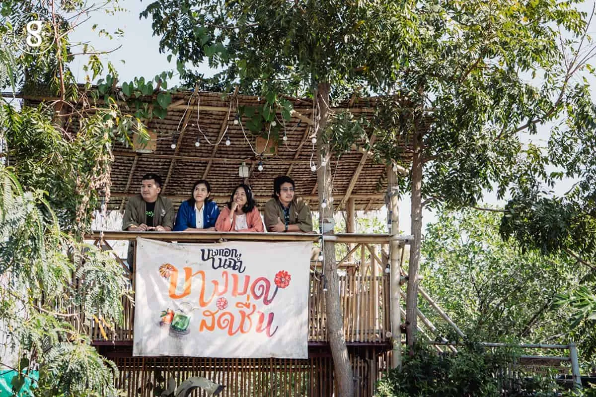 “ละแวกนี้ชาวบ้านใช้ชีวิตกับเรือเป็นหลัก เมื่อก่อนคลองบางมดดังมากเพราะมีส้มบางมด แต่ตอนนี้หายไปเยอะเพราะมีเรื่องของน้ำเค็มน้ำกร่อยเข้ามา นอกจากส้มก็มีมะพร้าว เวลาที่ฟาร์มเรามีอีเวนต์อะไรก็ตาม ก็จะเอามะพร้าวของแต่ละสวนเข้ามาขายด้วย แล้วจัดกิจกรรมเชื่อมโยงกับชุมชน เป็นทริปท่องเที่ยวไปในจุดต่าง ๆ ซึ่งเป็นอาชีพส่วนใหญ่ของคนแถบนี้”