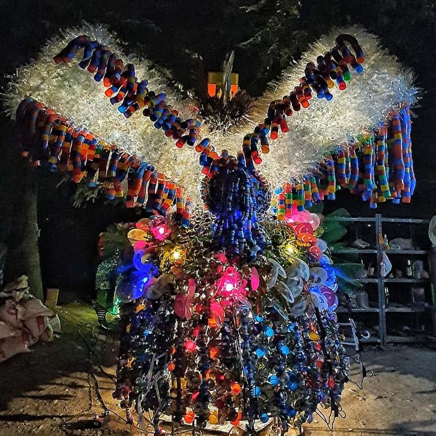 “เอ๋เคยทำงานชิ้นหนึ่ง ไปเก็บขยะในองค์กรหนึ่งมาทำเป็นต้นคริสต์มาส เป็นหลอดพลาสติกกับขวดพลาสติก ถ้าเราเก็บแล้วเอามากองบอกว่านี่ 300 กิโลฯ 500 กิโลฯ คนนึกภาพไม่ออก เราเลยมาทำให้เห็นว่ามันทำเป็นต้นคริสต์มาสได้สูงหกเมตรกว่าเลยนะ คนจะเข้าใจมากขึ้นว่าถ้าเราทำให้ต้นมันสูงขนาดนี้ได้นี่ถึงเวลาที่ต้องลดแล้วนะ แล้วทุกคนช่วยกันได้ จะคัดแยกขยะ ใช้ซ้ำของที่มีอยู่ ไม่ใช้ของใหม่ คุณก็มีส่วนในการดูแลโลกแล้ว