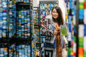 “สังเกตว่ากระเป๋าแต่ละใบไซส์จะไม่เท่ากัน เพราะเราได้ถุงผ้ามาหลายแบบ คนชอบแจกถุงผ้า แล้วบางทีก็ไม่ได้มีการใช้มันจริงๆ สีไม่สวยบ้างละ ลายไม่สวยบ้างละ แล้วถุงผ้าก็กองอยู่ตรงนั้น สุดท้ายที่บอกว่าถุงผ้าลดโลกร้อน มันกลายเป็นถุงผ้าเพิ่มขยะหรือเปล่า ถ้าอย่างนั้นเราเอามาทำให้มันเป็นถุงผ้าที่น่าใช้ได้ไหม เราไม่มีการใช้ทรัพยากรใหม่เลย
