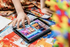 “บ้านเอ๋มีวัสดุพวกนี้เยอะ พ่อกับแม่จะไม่ค่อยทิ้งของ อย่างขวดน้ำหวานก็จะเอามาใส่น้ำดื่มแช่ตู้เย็น” เรียกว่าเธอได้เห็นการรีไซเคิล การรียูสข้าวของเหล่านี้มาจากพ่อแม่ที่เป็นต้นแบบ