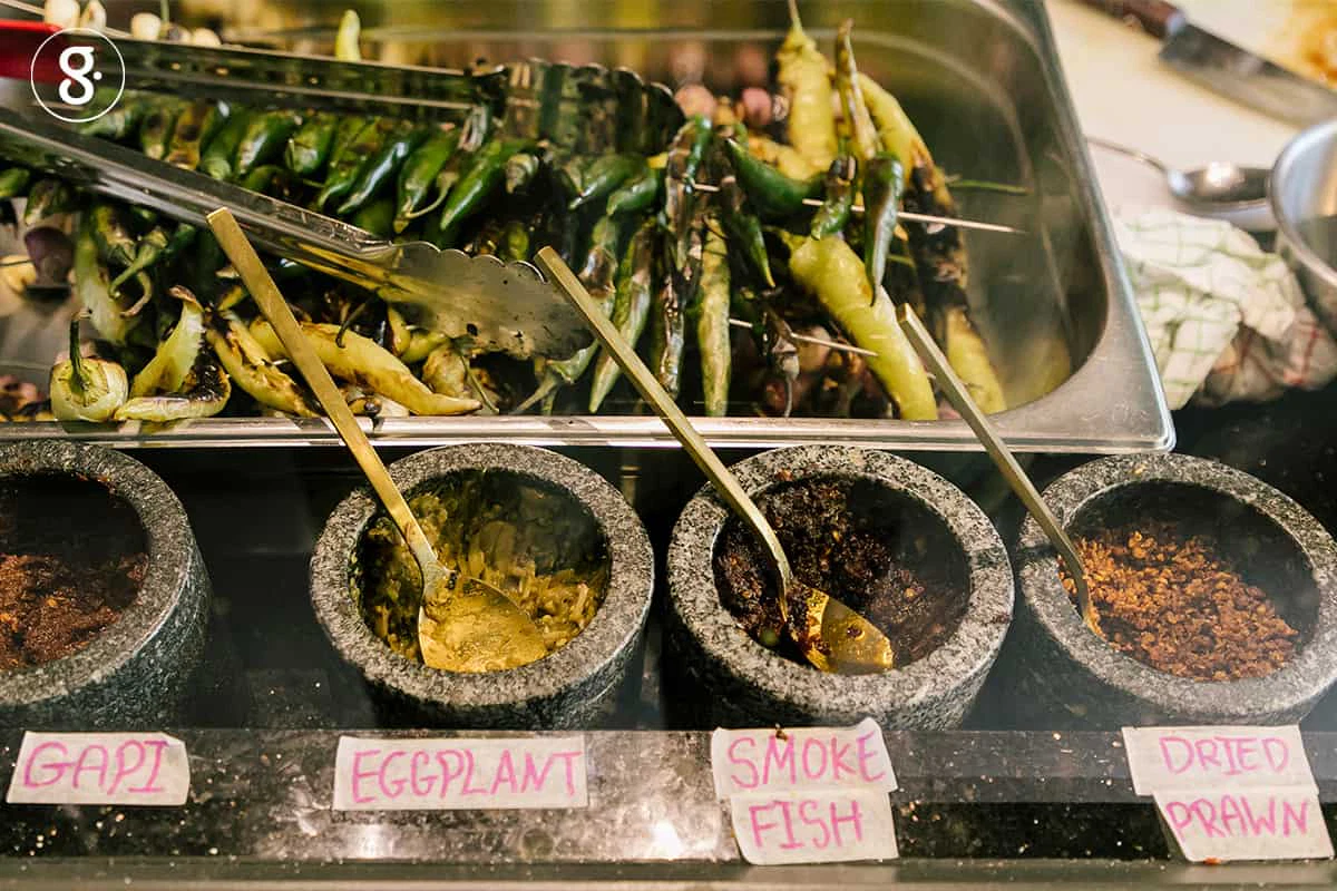 เขาเล่ายิ้มๆ ก่อนชวนเราพิจารณาวัตถุดิบในถ้วยน้ำพริกแต่ละชนิดที่ปรุงจากวัตถุดิบส่งตรงจากเครือข่ายเกษตรกรและชาวประมงที่ไว้ใจ รวมถึงรู้กระบวนการผลิตชนิดว่าเดินทางไปเห็นมากับตาตัวเอง