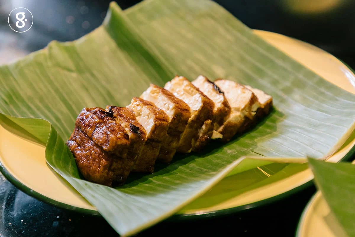 ก่อนลงท้ายด้วยการชวนให้เราชิมเต้าหู้ตุ๋นซอสรสเข้มข้นที่เลือกใช้เต้าหู้โฮมเมดมาทอดจนกรอบนอกนุ่มใน ก่อนนำมาตุ๋นในซอสถั่วเหลืองอินทรีย์ด้วยไฟอ่อนๆ เมื่อรสชาติเข้าเนื้อจึงจัดเสิร์ฟพร้อมกระเทียมเจียว ผักชี และพริกสด กินคู่กับน้ำพริกมะเขือเผาเผ็ดกลางๆ แล้วเข้ากันอย่าบอกใคร มากกว่านั้นพ่อครัวยังมีผักดองโฮมเมดรสเปรี้ยวอมหวานไว้ให้ตัดเลี่ยนกันด้วย