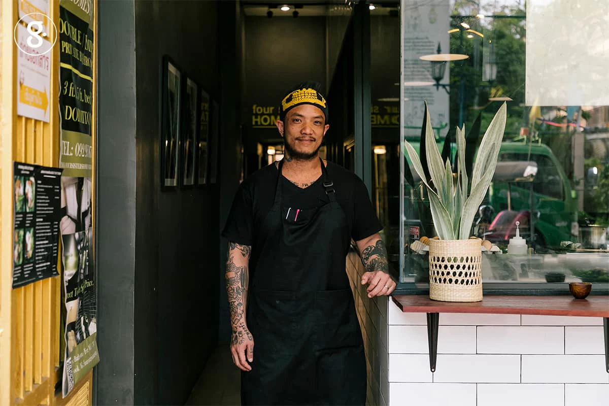 “ต้องบอกก่อนว่า จริงๆ แล้วเราไม่ได้โตมากับอาหารไทย เพราะย้ายไปอยู่นิวซีแลนด์ตั้งแต่อายุ 13 และใช้ชีวิตอยู่ที่นั่นนานเกือบสิบปี จนกลับมาทำงานที่ร้าน 80/20 ซึ่งใช้วัตถุดิบไทยถึง 80 เปอร์เซ็นต์ ถึงได้เรียนรู้ว่าวัตถุดิบบ้านเรามันน่าตื่นเต้นมากๆ ทั้งในแง่คุณภาพและรสชาติ ซึ่งจากจุดนั้นจนถึงวันนี้เราและทีมก็ขยับจาก 80 เปอร์เซ็นมาเป็นการใช้วัตถุดิบไทยเกือบ 100 เปอร์เซ็นต์แล้ว”
