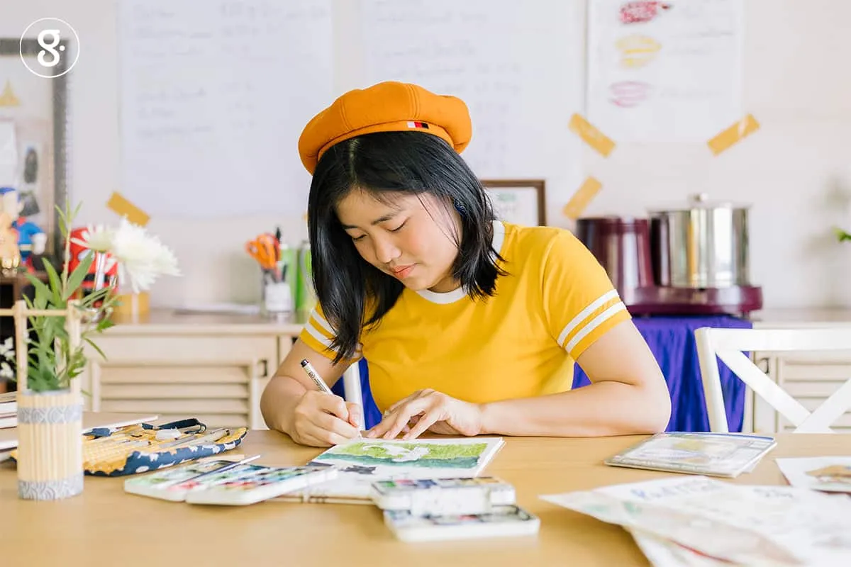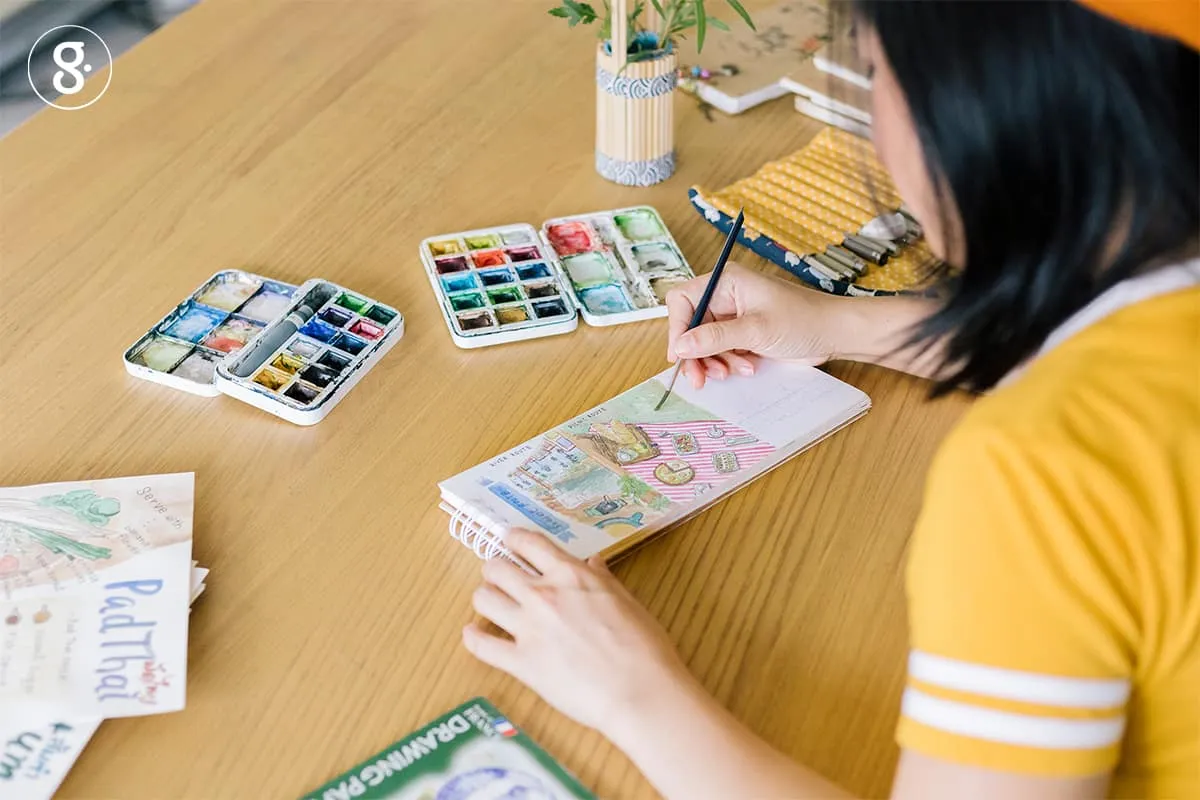 นอกจากการวาดรูปเล่าเรื่องราวของเธอแล้ว จิงยังเปิดคอร์สเล็กๆ สอนเล่าเรื่องผ่านสีน้ำ ให้ผู้คนที่สนใจมาลงเรียนกับเธอได้ด้วย