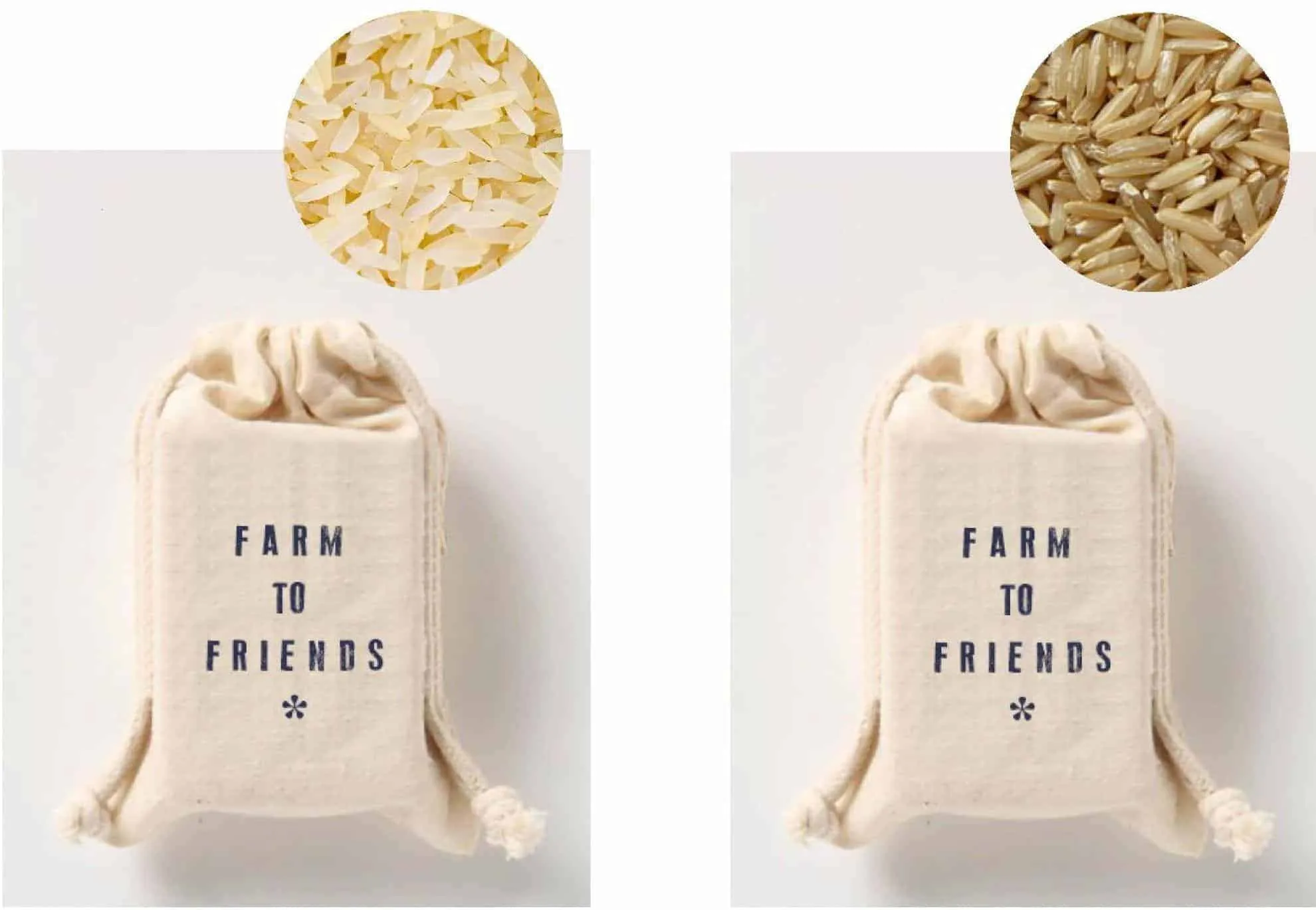 เรียบ แต่ลึกซึ้ง คือคำจำกัดของขวัญปีใหม่จาก Farm to Friends ข้าวอินทรีย์ที่บรรจุรวมอยู่ในถุงผ้าแสนเรียบ มีแค่คำว่า FARM TO FRIENDS ที่ถูกสกรีนบนถุงผ้า ชุดของขวัญปีใหม่ 2561 จาก Farm to Friends นี้ เป็นข้าวอินทรีย์ที่ส่งตรงมาจากเพื่อนนักปลูกข้าวจากจังหวัดยโสธร มีทั้งหมด 6 กล่องให้เลือก โดยแต่ละกล่องจะมีข้าว 10 ถุง (ถุงละ 1 กก.) อาทิ ข้าวหอมมะลิอินทรีย์, ข้าวกล้องหอมมะลิอินทรีย์, ข้าวไรซ์เบอร์รี่อินทรีย์, ข้าวกล้องสามสีอินทรีย์ เป็นต้น โดยมีมูลนิธิสายใยแผ่นดินคอยเป็นพี่เลี้ยงสอน ให้เพื่อนปลูกทำนาปลอดสารพิษได้ตามหลักมกท. (สำนักงานมาตรฐานเกษตรอินทรีย์) เมื่อมีเพื่อนปลูกแล้วก็ต้องมีเพื่อนกินอย่างเราๆ คอยช่วยสนับสนุนด้วย อิ่มด้วย สุขภาพดีด้วย แถมยังได้ช่วยเพื่อน และยังเป็นของขวัญพิเศษที่เพื่อนน่าให้อีกเพื่อนด้วย