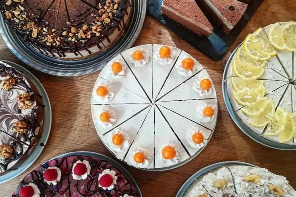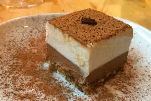 ส่วนของหวานก็ยังคงความเป็น raw food เช่นกัน ซึ่งเท่ากับว่าขนมของที่นี่ไม่ได้ใช้ความร้อนสูงเหมือนขนมอบทั่วไป การคิดเมนูที่จะทำให้ของหวานเซ็ตตัวได้ จึงถือเป็นเรื่องชวนท้าทายอย่างมาก แต่ The Raw Kitchen Malmö ก็เล่นแร่แปรธาตุจนออกมาเป็นขนมหวานที่แสนจะสมบูรณ์แบบ แถมยังยึดหลักปลอดกลูเตน ปราศจากน้ำตาลในส่วนผสม เช่น ทีรามิสุ ที่ทำมาจากอัลมอนด์ เม็ดมะม่วงหิมพานต์ กาแฟ ให้รสหวานจากอินทผาลัม เพิ่มความคงตัวให้เนื้อเค้กด้วยน้ำมันมะพร้าว ไซรัปสกัดจากข้าว แล้วโรยหน้าด้วยไอริสมอสป่น ซึ่งเป็นสาหร่ายสีน้ำตาลชนิดหนึ่ง