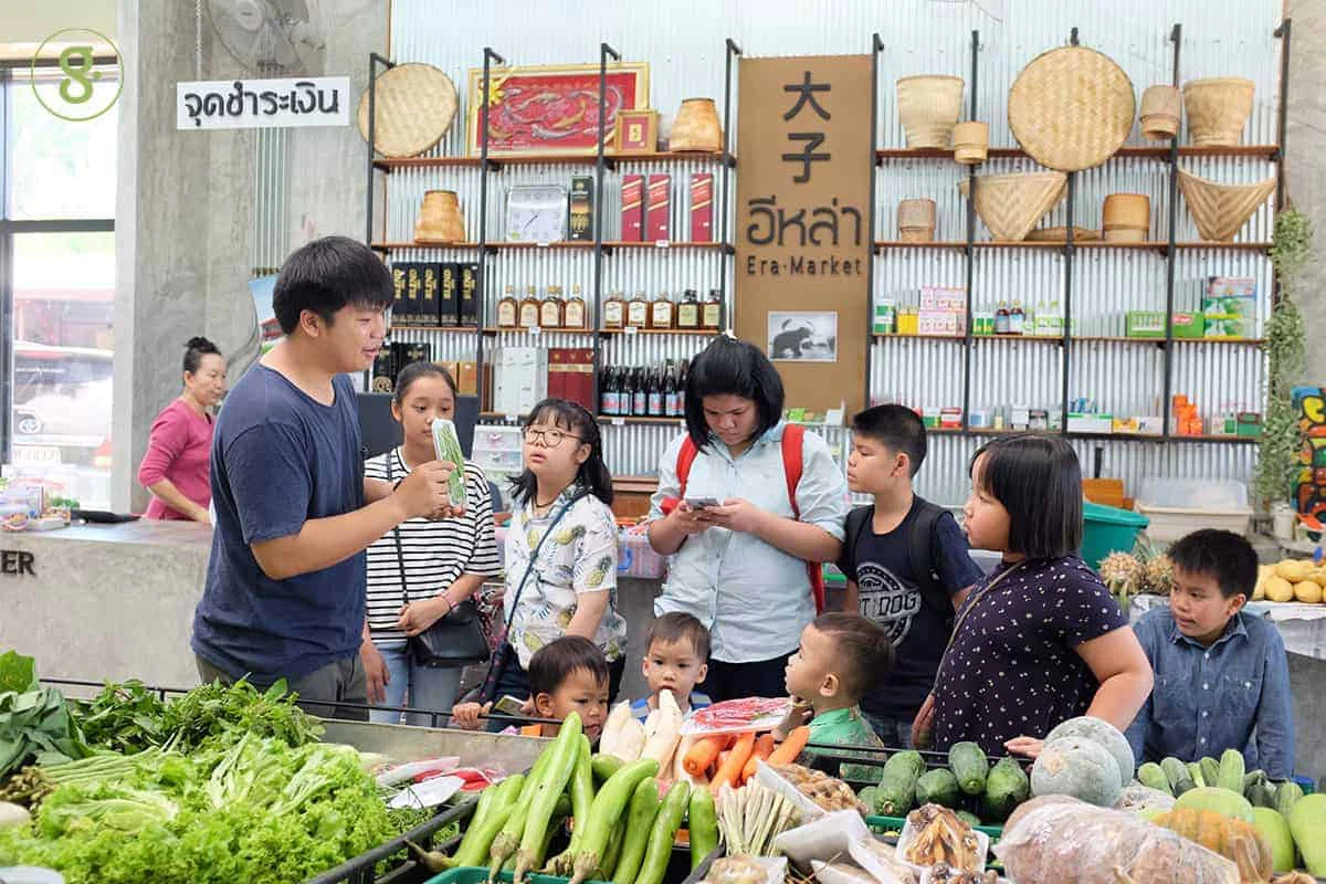 “ในเบื้องต้น ผมคิดว่าอยากช่วยเหลือชาวบ้านที่ปลูกผัก ไม่ให้เขาเหลือผักแล้วเอาไปทิ้งเปล่าๆ บางครั้งชาวบ้านเอามา เขาก็เปลี่ยนได้ไปเป็นเงินรายได้หรือแลกกับของในร้านเรา อีกอย่างคือเราอยากให้ความสำคัญกับการกินดี เพราะร้านเราขายของกินเป็นหลัก นอกจากของที่ขายจะต้องสด สะอาด หรืออันไหนตกหล่นไม่ดีก็ให้ลูกค้าเอามาเปลี่ยนใหม่ได้เสมอ ผมก็อยากให้ผักจากชุมชนเป็นมุมเล็กๆ ของร้านที่ได้พูดสิ่งนี้” เจ้าของร้านเล่ายิ้มๆ