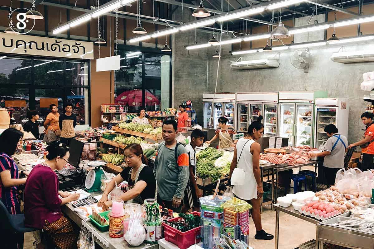นอกจากหน้าตาภายนอกของร้าน ความตั้งใจ ‘ดี’ ของอีหล่าคือการเป็นซูเปอร์มาร์เก็ตของชุมชน ที่ไม่ได้เลือกของนำเข้าจากต่างประเทศมาขายเหมือนซูเปอร์มาร์เก็ตทั่วไป แต่ขายสินค้าที่ชุมชนนิยมใช้หรือซื้อกันจริงๆ โดยเฉพาะสินค้าในหมวดของสด ที่จะมีไอเท็มเฉพาะคนท้องถิ่นอย่างปลาร้าน ปลาหมึกแห้ง และผักพื้นบ้าน