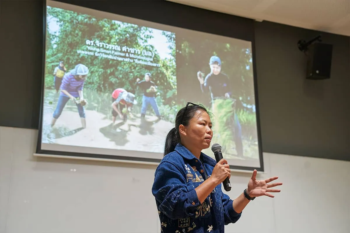 หลังแนะนำตัวกันเสร็จแล้ว มล-จิรวรรณ คำซาว และทีมเชียงดาว ก็เริ่มบอกเล่าเรื่องราวเส้นทางการทำงานในฐานะของผู้ที่ทำงานสนับสนุนชุมชนต้นน้ำว่า ก่อนหน้านี้เธอทำงานในสายธุรกิจ แต่ปัจจุบันคำว่าธุรกิขในมุมชีวิตนั้นคือ ธุรกิจที่ยั่งยืน (Sustainable Business)