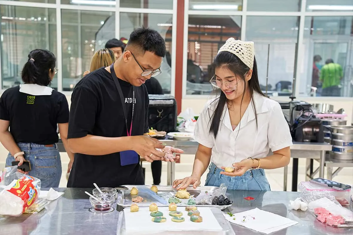 ถัดจากการอบรมวันแรก การอบรมวันที่สองนี้จัดขึ้นที่ คณะเทคโนโลยี มหาวิทยาลัยขอนแก่น ในพื้นที่ห้องปฏิบัติการอาหาร ที่มีเครื่องมือเครื่องไม้ปรุงอาหารอย่างครบครัน พร้อมทั้งบุคลากรประจำคณะที่คอยอำนวยความสะดวก