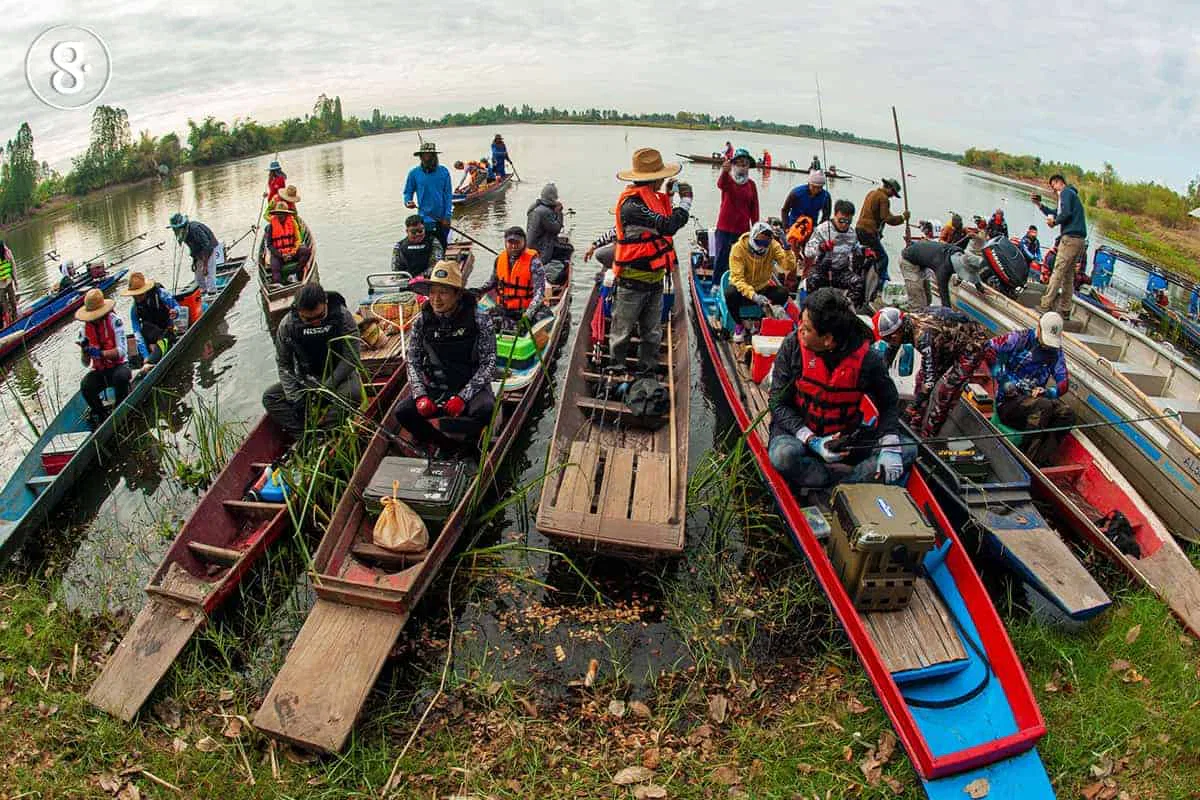 ล่องเรือเสร็จ เราก็กลับขึ้นท่าน้ำเดิม และเดินชมงานต่อ อย่างที่บอกว่างานมหกรรมครั้งนี้ เน้นสร้างสัมพันธ์ของผู้คนรอบแก่งและสื่อสารเรื่องราวของการอนุรักษ์แก่งละว้าให้กับผู้มาเยือน เราจึงได้เห็นอีกหลายกิจกรรมสุดสร้างสรรค์ที่จัดขึ้นเพื่อจุดประสงค์ดังกล่าว อาทิ การแข่งขันออกแบบอาหารโดยใช้วัตถุดิบจากแก่งละว้า ภายใต้ชื่อกิจกรรมสุดเก๋ไก๋ “Master Chef แก่งละว้า” โดยมีวัตถุดิบหลักที่กำหนดไว้คือ เนื้อปลากรายขูด และ ปลาบู่จากแก่งละว้า หรือกิจกรรมชวนม่วนอย่าง แข่งขันจับปลาไหล แข่งขันส้มตำไหลบัวลีลา กิจกรรมบิงโกแก่งละว้า โดยนักศึกษามหาวิทยาลัยมหาสารคาม สอยดาวการกุศล แข่งขันหว่านแห ประกวดควายขี้เหร่ ประเด็นเรื่องการประกวดควายนี้ เพื่อเชื่อมโยงไปยังอาชีพหนึ่งที่เกิดขึ้นในพื้นที่รอบแก่งละว้า นั่นคืออาชีพการเลี้ยงควายทามตามธรรมชาติ เพื่อจำหน่ายควายและปุ๋ยมูลควายที่กินอาหารจากพืชพรรณธรรมชาติรอบแก่ง เห็นไหมว่านอกจากความสนุกที่เกิดขึ้นแล้ว ยังสอดแทรกเรื่องราววิถีชีวิตของผู้คนแก่งละว้าเอาไว้อย่างเต็มเปี่ยม