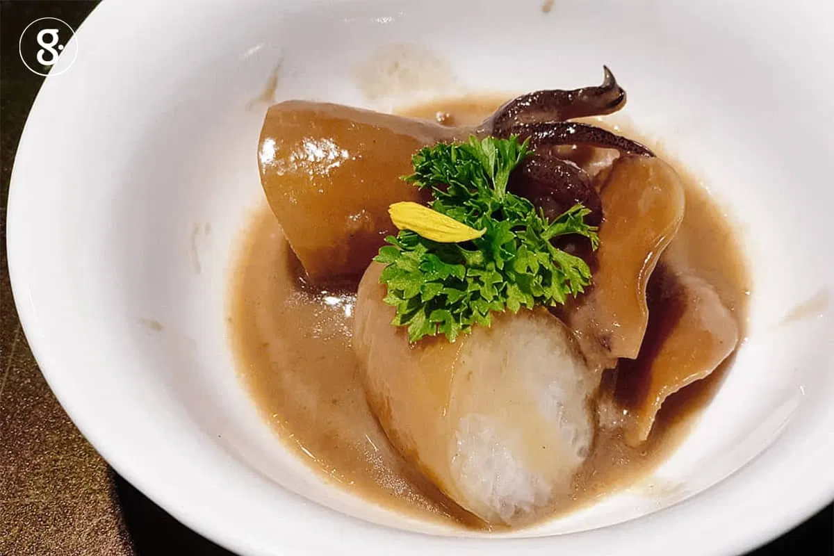 ตามมาด้วย ไก่กอและเสิร์ฟคู่กับตุปะใบพ้อ หรือ ข้าวเหนียวที่ถูกห่อในใบพ้อนั่นเอง ซึ่งปกติเมนูนี้จะได้กินเฉพาะในงานมงคลหรือมอบให้คนพิเศษเท่านั้น เป็นเมนูดั้งเดิมของเมืองปัตตานี ซึ่งต้องใช้ทักษะในการห่อข้าวในใบพ้อโดยไม่ให้แน่นเกินไป ส่วนไก่กอและนั้นรสชาติดีมาก เป็นไก่เก้าสายพันธ์จากเบตง เนื้อเหมือนไก่ตอนแต่หนังเหมือนไก่บ้าน ปรุงรสแบบดั้งเดิมของปัตตานี โดยมีการหมักหัวกะทิและเครื่องสมุนไพรไว้ก่อน วางข้างๆ มากับ อีแกอายอ (ปลาน้ำเค็มอีกแก) หรือ ปลาโอเนื้อแน่นเหมือนปลาทูน่า นำมาย่างไฟจนหอม แต่ตัดเลี่ยนด้วยซอสลูกหยีสามรสสูตรลับของกลุ่มลูกเหรียง ที่ทำกินกันเป็นประจำ เพราะเป็นวัตถุดิบที่มีเยอะมากในภาคใต้ มีความเปรี้ยว อมหวาน เพิ่มสัมผัสด้วยแครกเกอร์ทุเรียนทอด