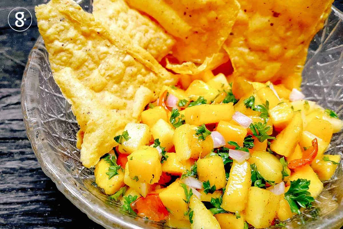 นอกจากข้าวเหนียวมะม่วงที่ช่วยให้มะม่วงหนองแซงในสวนบ้านเราไม่ต้องสุกเสียเปล่า ‘ซัลซ่า’ ก็เป็นอีกเมนูที่มีดีกรีความอร่อยไม่แพ้กัน ทว่าได้แต้มต่อตรงปรุงง่าย ไม่ซับซ้อน ทำให้อร่อยง่ายกว่าการมูนข้าวเหนียวประมาณสิบเท่า ที่สำคัญคือกินแล้วแสนสดชื่น เพราะอุดมด้วยรสเปรี้ยวๆ หวานๆ ของมะม่วง มะเขือเทศ และน้ำมันหอมระเหยจากหอมแดงและพาร์สลีย์ และเป็นเมนูของว่างฉบับแม็กซิกันสไตล์ที่มีสเน่ห์ขึ้นอีกระดับ เมื่อได้ ‘มะม่วงพันธุ์พื้นบ้าน’ มาเติมเต็มรสชาติอันหลากหลาย ให้ในหนึ่งคำคลุกเคล้าด้วยสัมผัสที่แตกต่าง