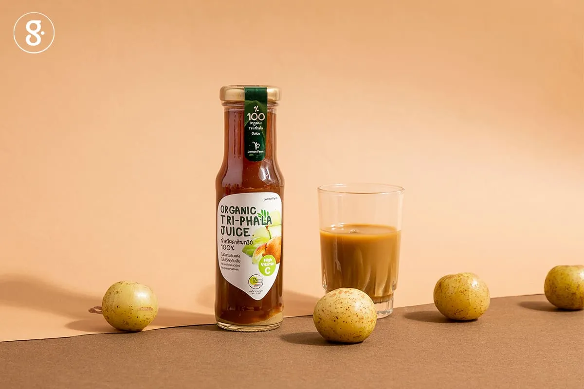 สมุนไพรอายุรเวทที่ช่วยปรับสมดุลและล้างพิษขวงเข้มข้นนี้ มาจากผลสมอพิเภก สมอไทย และมะขามป้อมสด วิตามินซีสูงลิ่วชนิดกินเข้าไปแล้วตาหยี แต่ในความเปรี้ยวขื่นนี้ช่วยเสริมสร้างภูมิคุ้มกัน และไม่ต้องดื่มทีหมดขวด ทางแบรนด์แนะนำให้ดื่มแค่ 25 มิลลิลิตร หรือ 1/6 ของขวดต่อวันก็พอ หรือใครไม่ไหวจะดื่มเพียวๆ ผสมน้ำเปล่าดื่มก็ได้ ฟีลลิ่งเหมือนกินยา และหลังจากเปิดแล้วควรปิดให้สนิทและแช่เย็นเก็บไว้ และดื่มทุกวันเพื่อปรับสมดุลและล้างพิษนะ