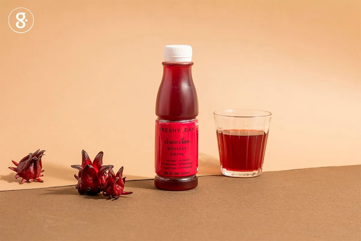 น้ำกระเจี๊ยบดูจะเป็นน้ำสมุนไพรที่เราคุ้นเคยกันตั้งแต่เด็กๆ ทำจากกระเจี๊ยบแดงที่เรานึกว่าเป็นดอก แต่จริงๆ มันคือกลีบรองดอกและกลีบเลี้ยงที่หุ้มเมล็ดไว้ต่างหากล่ะ ซึ่งคุณสมบัติของกลีบเลี้ยงหลักๆ คือมีฤทธิ์เย็น ช่วยดับร้อน และมีรสเปรี้ยวช่วยดับกระหายได้ชะงัด แถมยังช่วยลดไข้ แก้ไอ แก้เสมหะ รวมทั้งขับปัสสาวะได้ด้วย ซึ่งน้ำกระเจี๊ยบ Freshy Day ขวดนี้ เป็นน้ำกระเจี๊ยบรสเปรี้ยวนำ และหวานตามจากน้ำตาลอ้อยออร์แกนิก ในปริมาณที่น้อยลงมานิดหนึ่ง ดื่มเรียกความสดชื่นและได้สรรพคุณจากกระเจี๊ยบพอให้กระชุ่มกระชวย