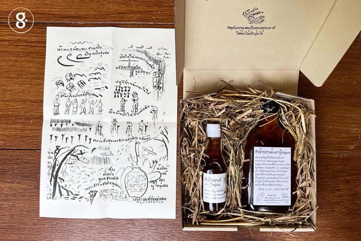 น้ำปลาหมักเองรุ่นแรกยังไม่เป็นที่พอใจ “เค็มเกินไป” ผู้ใหญ่วิจารณ์ผลงานตัวเอง แต่เขาไม่หยุดเรียนรู้ ปีต่อมา ปลามาใหม่ ผู้ใหญ่ก็ลองปรับสูตรใหม่ จนวันที่เราได้รับแจกน้ำปลาจากผู้ใหญ่ แล้วไปขอมาจัดจำหน่าย ไม่ใช่แค่เพื่อจะนำเสนออาหารธรรมชาติจากภูมิปัญญาและทรัพยากรท้องถิ่น แต่เพราะน้ำปลาของผู้ใหญ่เชื่อมโยงไปถึงงานปลูกป่าที่เขาบากบั่นทุ่มเททำมาตลอด