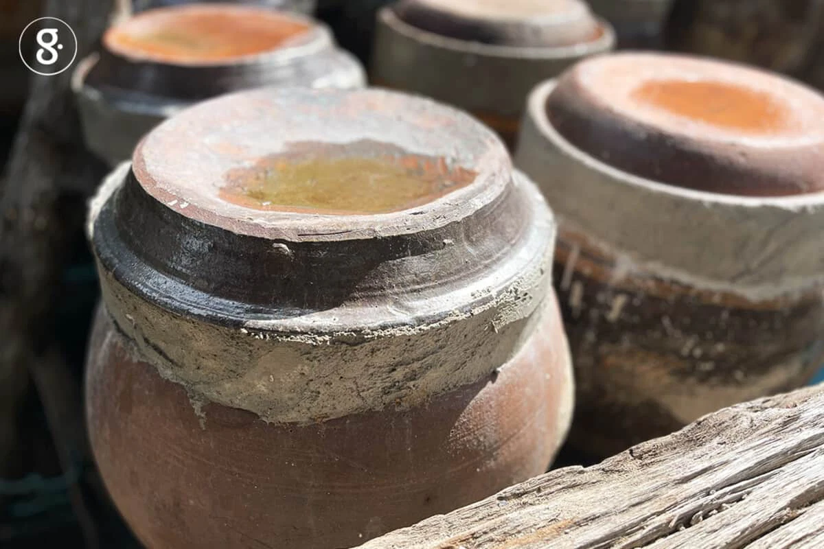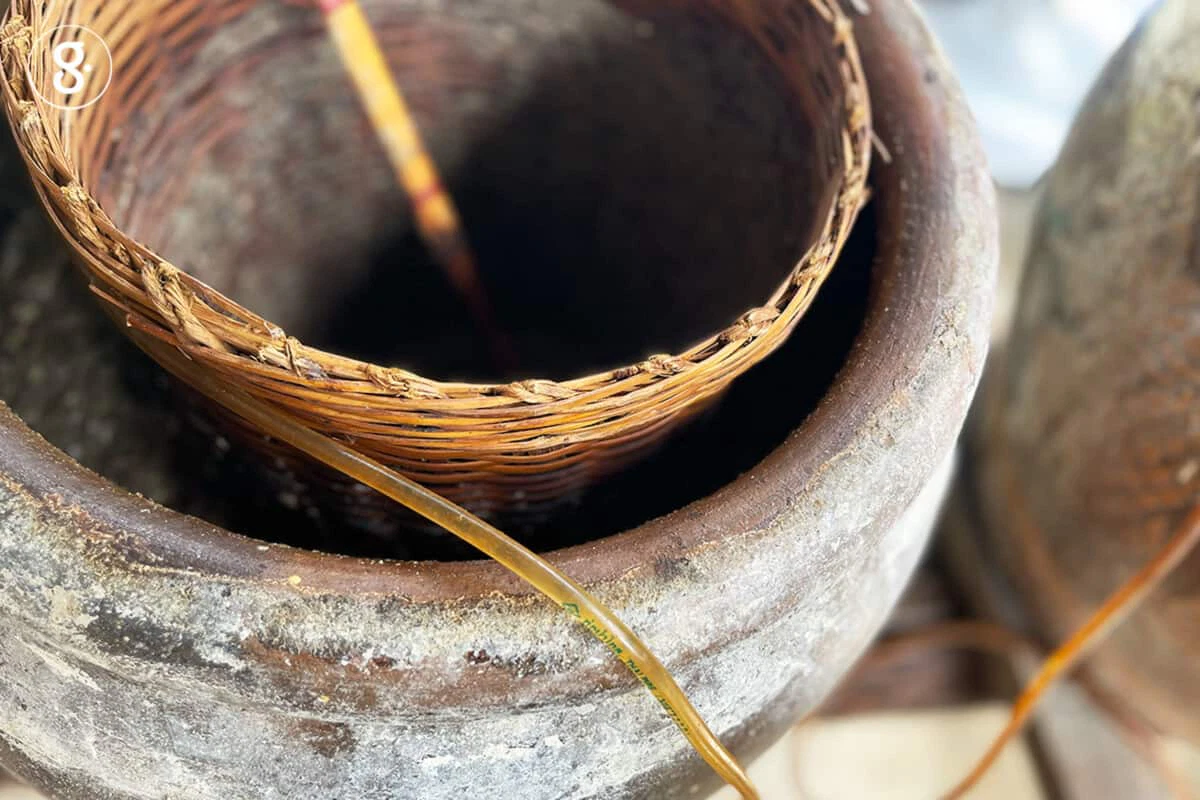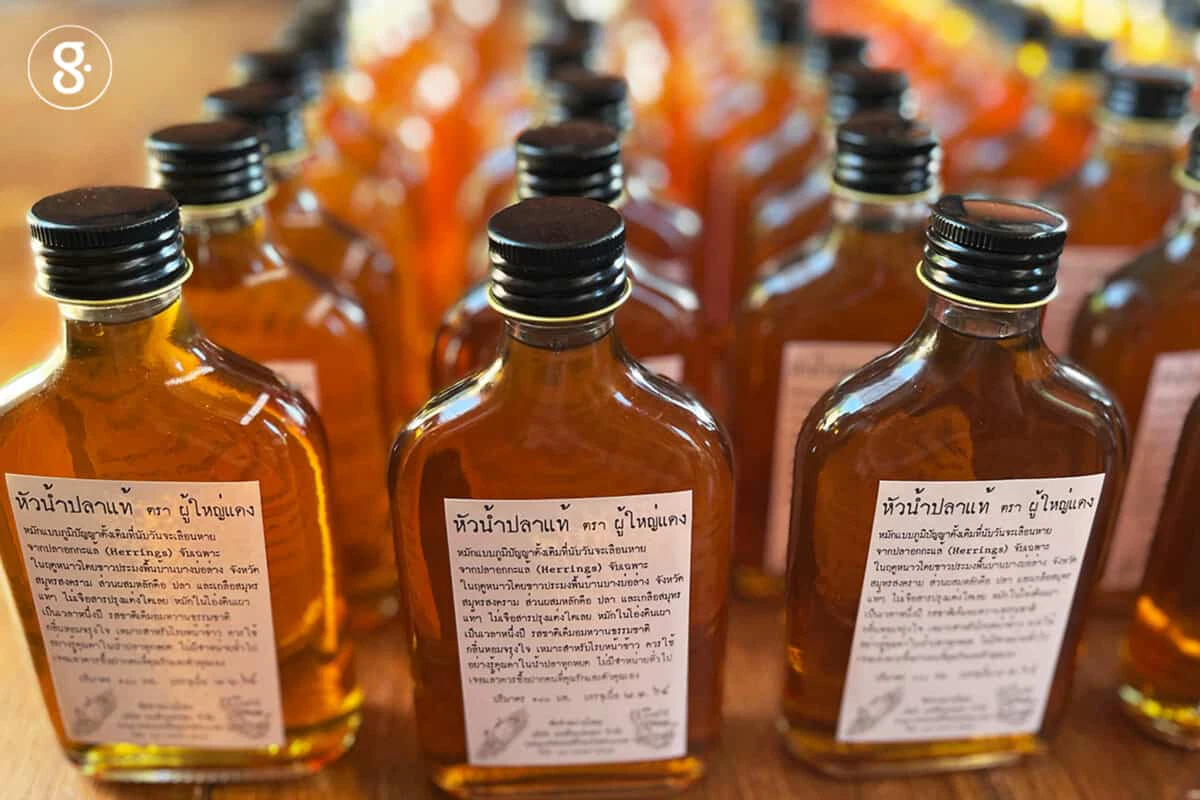 พอครบเวลา เปิดฝาโอ่ง ผู้ใหญ่จะใช้ตะกร้าไม้ไผ่ที่ไม่ได้เคลือบแลคเกอร์ใส่ลงไปในโอ่งเพื่อแยกกากออกจากน้ำ ใช้สายยางดูดน้ำปลาออกมา แล้วนำน้ำปลาดิบที่ได้ไปต้มเดือด ช้อนฟองให้สะอาด จากนั้นนำไปเกรอะ โดยใส่ถุงกรองที่เป็นผ้าเนื้อหนาเพื่อแยกกากอีกครั้ง น้ำปลาจะค่อย ๆ หยดผ่านถุงทีละหยด ๆ เก็บน้ำปลาไว้ในโหลตั้งทิ้งอย่างน้อย 2-3 วันเพื่อให้ตกตะกอนนิ่งสนิท แล้วจึงบรรจุขวดโดยการไขก๊อกผ่านผ้ากรองละเอียดอีกครั้งหนึ่ง เพื่อให้ได้น้ำปลาที่สีสวยใสน่ารับประทาน กลิ่นรสกลมกล่อมน่าประทับใจ ผู้ใหญ่บอกว่าหัวน้ำปลาแบบนี้ควรไว้โรยหน้าข้าว จะสัมผัสรสชาติได้เต็มที่กว่านำไปทำอาหารผ่านความร้อน