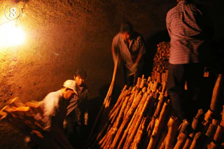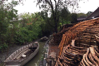 ไม้ทั้งหมดจะถูกลำเลียงลงเรือเพื่อถ่ายไม้มาไว้ที่โรงเตา ภาพที่เราจะเห็นทันทีเวลาไปเยี่ยมชมโรงเตาก็คือขบวนทิวแถวไม้โกงกางที่ตั้งตรงเป็นระเบียบเรียงรายหนาแน่นรอเวลานำเข้าเตาเผาซึ่งซ่อนตัวหลบตาอยู่ภายในโรงเตา