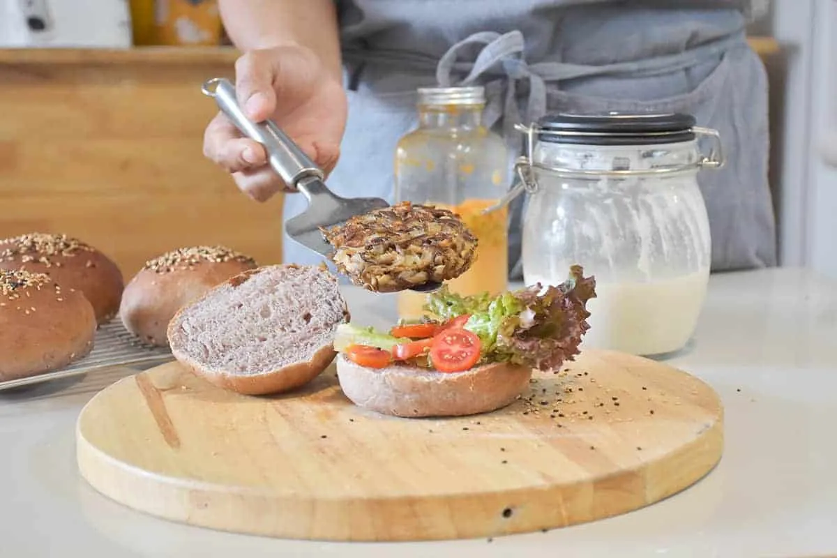 มัชรูมเบอร์เกอร์แป้งข้าวพื้นบ้าน