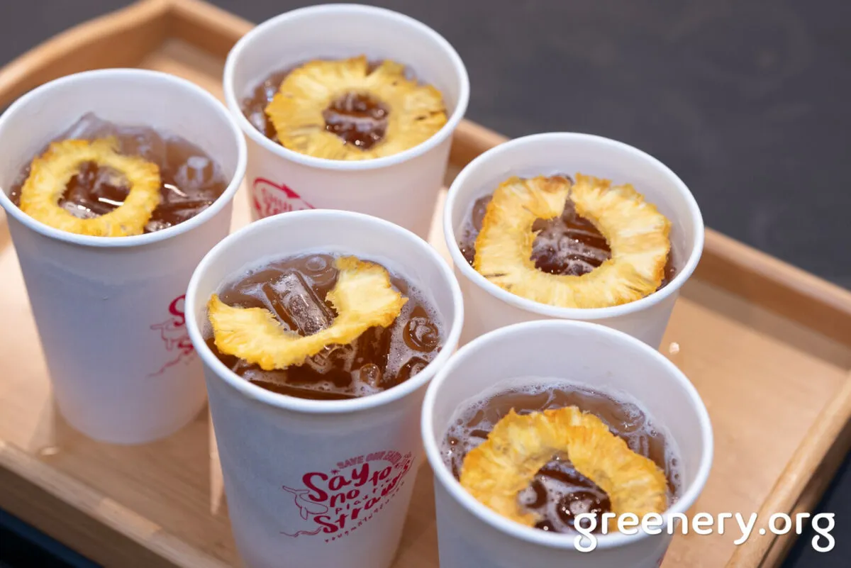 หลังจากเต็มอิ่มกับเสวนาดี ๆ ก็ถึงเวลาปิดท้ายกิจกรรมด้วยการนำเอาข้อพิสูจน์ของสารคดีมาใช้จริง โดยพลอย จาก SOS Thailand นำเอา “Surplus Food” หรือ “อาหารส่วนเกิน” ที่ไม่ถูกแตะต้องจากไลน์บุฟเฟ่ต์โรงแรม ซึ่งเป็นเบเกอรี่ ที่เรารู้สึกว่าหน้าตาไม่ขี้ริ้วขี้เหร่เลย แถมรสชาติยังปกติและอร่อยมาก ๆ กินพร้อมเครื่องดื่มสูตรพิเศษ เทปาเช่ คอมบูฉะแบบเม็กซิโกอุดมไปด้วยจุลินทรีย์โพรไบโอติก ที่แพรหมักจากเปลือกสับปะรดแบบ Zero Waste แก้วนี้รสหวานอมเปรี้ยว ที่มีกลิ่นหอมอ่อน ๆ ว้าวซ่าสุด ๆ