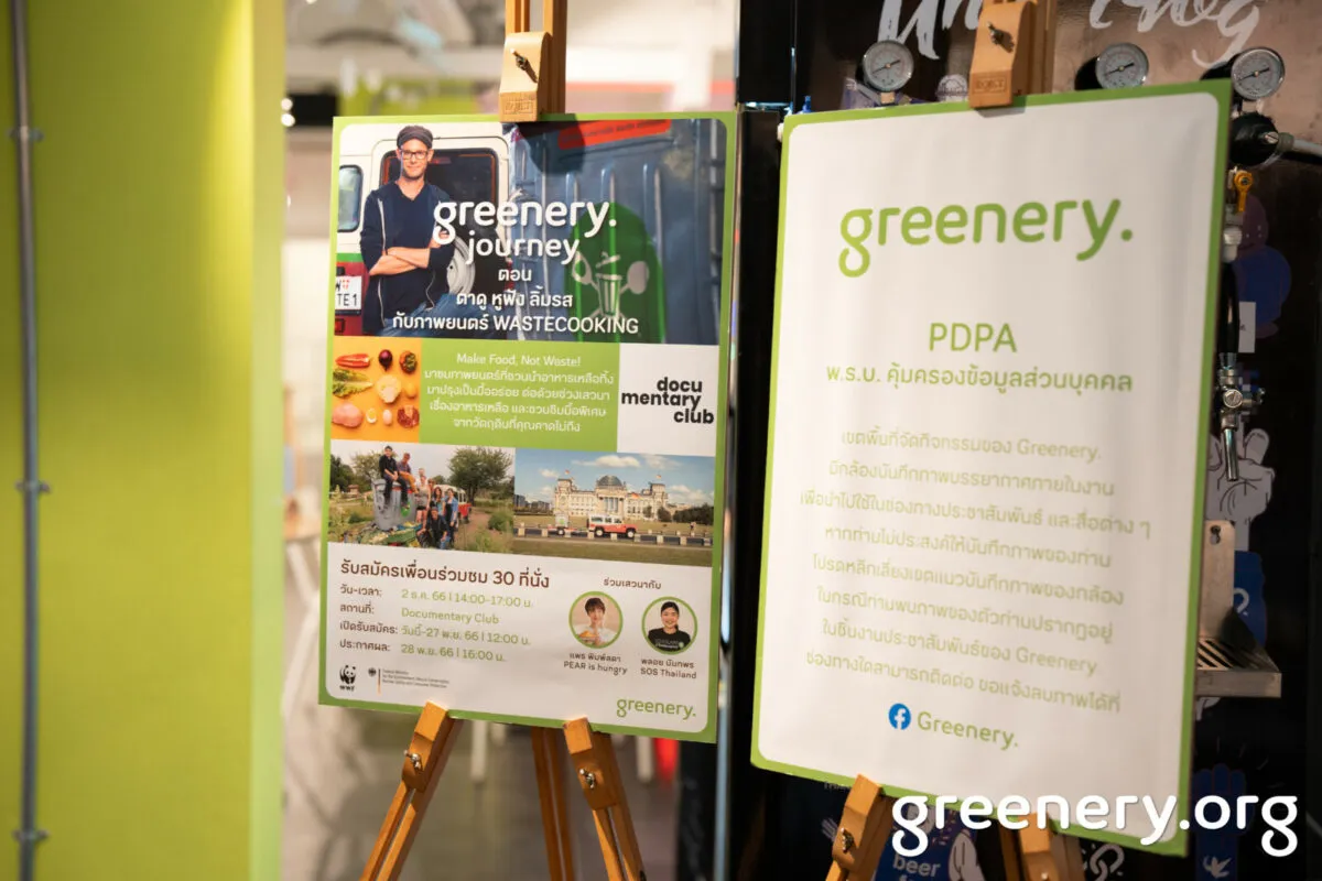 Greenery. และ WWF Thailand จัดกิจกรรม Greenery Journey ตอน ตาดู หูฟัง ลิ้มรสกับภาพยนตร์ WASTECOOKING กันที่ Documentary Club ด้วยการชวนเพื่อน ๆ มารู้จักกับปัญหาขยะอาหาร ผ่านการดูหนังสารคดี พร้อมฟังเสวนากับ แพร-พิมพ์ลดา ไชยปรีชาวิทย์ เจ้าของเพจ PEAR is hungry และพลอย-นันทพร ตีระพงศ์ไพบูลย์ จาก Scholars of Sustenance Thailand – SOS Thailand องค์กรผู้ช่วยชีวิตอาหารเหลือจากทั่วไทยเพื่อกลุ่มเปราะบาง ที่ทั้งคู่มาร่วมแชร์ไอเดียและนำเมนูพิเศษจากอาหารเหลือทิ้งมาเสิร์ฟให้ผู้มาร่วมกิจกรรมได้ชิมกันอีกด้วย