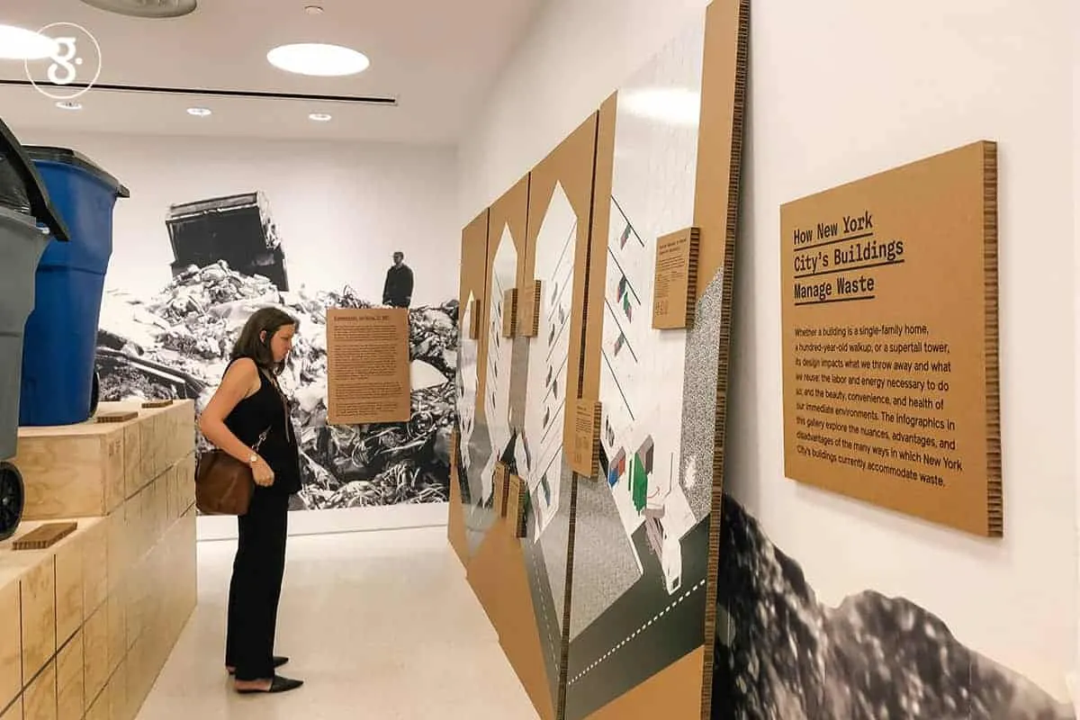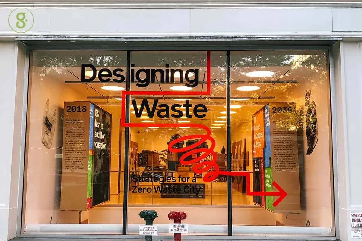 นิทรรศการ Designing Waste: Strategies for a Zero Waste City ที่ The Center of Architecture ณ มหานครนิวยอร์ก เล็งเห็นปัญหาเหล่านี้ และเชื่อว่าสถาปนิกรวมทั้งนักออกแบบสามารถเข้ามามีบทบาทสำคัญในการแก้ปัญหานี้ได้เช่นกัน เพื่อส่งเสริมให้นิวยอร์กรุกสู่เป้าหมายการเป็นเมืองปลอดขยะภายในปี ค.ศ. 2030 จึงผลักดันให้เกิดการร่วมมือระหว่างดีไซเนอร์ สถาปนิก และผู้เชี่ยวชาญด้านการจัดการขยะ เพื่อมองหาวิธีการที่จะนำความรู้ความสามารถด้านการออกแบบ มาใช้ออกแบบกลยุทธ์เพื่อลดขยะร่วมกัน