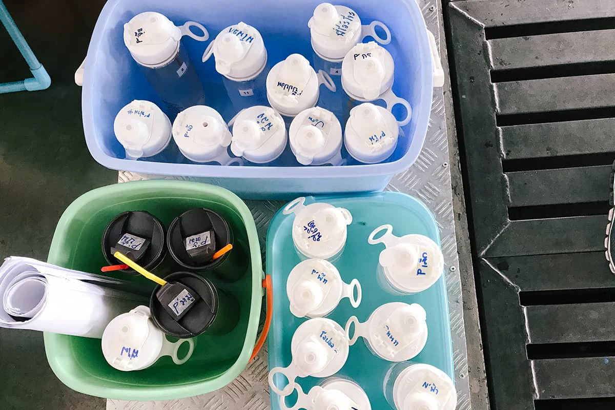 คุณสุยเล่าให้เราฟังเพิ่มว่า ในช่วงแรกที่เริ่มใช้นโยบายนี้ ต้องมีการปรับตัวทั้งทางบริษัทและพนักงาน เนื่องจากจำนวนบุคลากรของแต่ละกองก็แตกต่างกันไป บางกองใช้คนมาถึง 40-80 คน การต้องล้างแก้วจำนวนมากก็เป็นการเพิ่มงานให้ทีมสวัสดิการ บริษัทจึงใช้วิธีเพิ่มค่าแรงให้ทีมสวัสดิการ และที่บริษัทก็จะมีแก้วน้ำกระติกน้ำกองกลางให้เบิกไปใช้ ค่อยๆ ปรับตัวไป