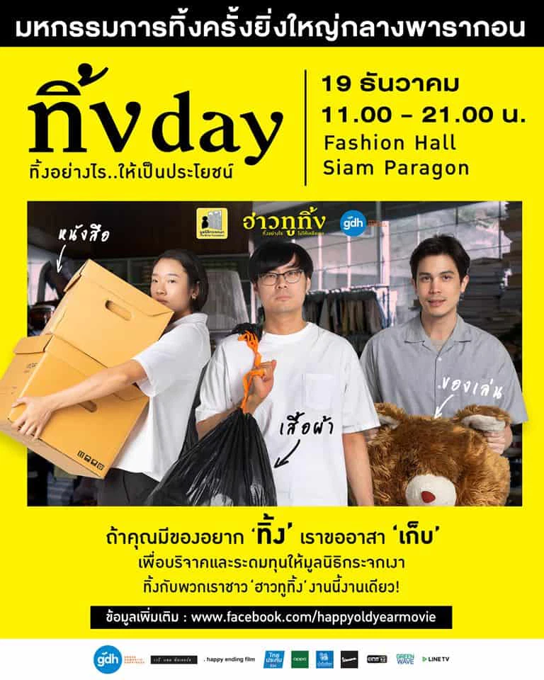 และจากไอเดียนั้นก็ได้ถูกนำมาต่อยอดเป็นกิจกรรม ‘ทิ้งday’ ซึ่ง GDH จับมือกับ มูลนิธิกระจกเงา ชวนคนอยากตัดใจมาทิ้งของ ไม่ว่าจะเป็น เสื้อผ้า หนังสือ หรือของเล่น เพื่อนำไประดมทุนส่งต่อให้กับมูลนิธิกระจกเงา และร่วมซื้อของมือสองจากดารานำและแขกรับเชิญได้อีกด้วย ใครอยากไปร่วมทิ้งขยะให้เป็นประโยชน์ก็ไปเจอพวกเขาได้ที่ Fashion Hall Siam Paragon ในวันพฤหัสบดีที่ 19 ธันวาคมนี้ เวลา 11.00-21.00 น.
