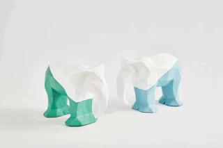 ผลิตภัณฑ์ของแต่งบ้านจากกระดาษขึ้นรูปเป็นช้าง ใช้การขึ้นบล็อกกระดาษแทนการพับเพื่อให้รูปทรงมีความแข็งแรงขึ้น โดยงานปั้นช้างจากการกระดาษครั้งนี้ได้ทดลองถึง 23 ครั้งจึงสำเร็จ
