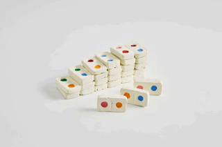 28 pieces คือจำนวนโดมิโนที่บรรจุในกล่อง โดมิโนโดยปกติทั่วไป จะเห็นวัสดุในรูปของพลาสติกหรือไม้ แต่เปลี่ยนเป็นการนำกระดาษเหลือใช้ที่ไร้ค่ามาเป็นวัตถุดิบในการผลิต