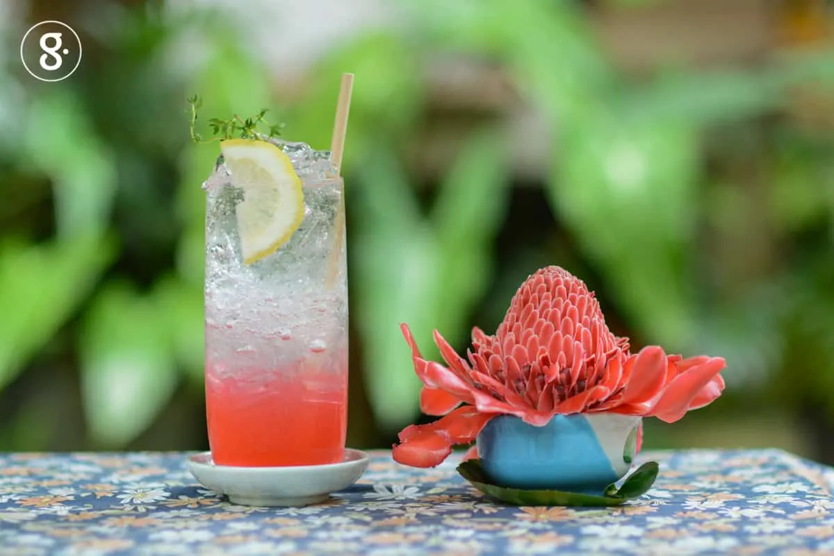 ด้วยแนวคิดนี้ เมนูของบ้านบ้านคาเฟ่ ส่วนใหญ่จึงอิงแอบอยู่กับฤดูกาลเป็นหลัก ช่วงหน้าผลไม้จึงอาจมีเมนูที่มีผลไม้หลากหลายให้ได้ชิมกัน เรามาเยือนร้านอาหารกลางสวนแห่งนี้ในช่วงต้นของหน้าร้อน เจ้าบ้านจึงต้อนรับเราด้วยน้ำดอกดาหลาสีสวย ผสมเลม่อนสดๆ ผลผลิตจากสวนของแม่อุ๊บุญเอง รสชาติชื่นใจ หอมกลิ่นดาหลา บวกเปรี้ยวสดชื่นของผลเลม่อนสีเหลือง เหมาะกับวันที่แสงแดดสดใสยิ่งนัก