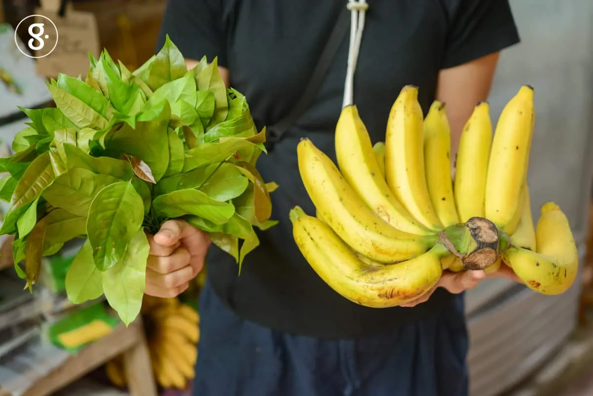 ลัดเลาะเยี่ยมชมพอเหงื่อซึม ตะวันเริ่มตั้งฉาก แอบกระซิบถามในครัวบ้านบ้านคาเฟ่ถึงเมนูหนักๆ เที่ยงนี้ ได้ยินเสียงแนะนำตอบกลับมาถึงเมนูเด็ดที่หลายคนต้องลองอีกแล้ว คือ ข้าวหน้าปลาใส่อวน เป็นเมนูพื้นบ้านของนครศรีธรรมราช ที่เราเพิ่งเคยลิ้มลองครั้งแรกที่นี่ เป็นเมนูข้าวสวยคู่กับปลาทอดกรอบ รสชาติคล้ายปลาส้ม หอมกลิ่นเนื้อปลาและส่วนประกอบต่างๆ ที่ใช่หมักคลุกปลา ชาวพื้นที่เรียกสิ่งที่หมักกับปลาว่า ‘อวน’ จึงเป็นที่มาของปลาใส่อวน กินคู่กับหอมซอย พริกขี้หนูสดๆ มะนาวพันธุ์พื้นเมืองอีกสักซีกหนึ่ง รสชาติออกมาลงตัวมากเลยทีเดียว ต่อด้วยราดหน้าราชินีผักพื้นบ้านแห่งภาคใต้ นั่นคือผักเหลียง บวกด้วยไข่ไก่สดๆ เก็บมาเมื่อเช้าจากเล้าท้ายสวน รสชาติความสดไม่ต้องพูดถึง จบหนึ่งมื้อกลางวันไปด้วยความอิ่มกายสบายใจ พวกเราจึงย้ายตัวไปขอนอนเปล ฟังเสียงนกกา จักจั่น ใต้ร่มไม้ในแบบฟินๆ อีกสักนิดก่อนกลับ